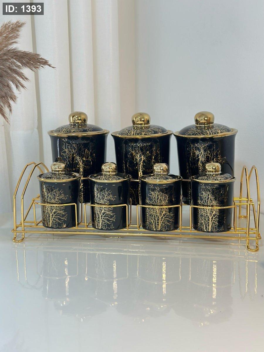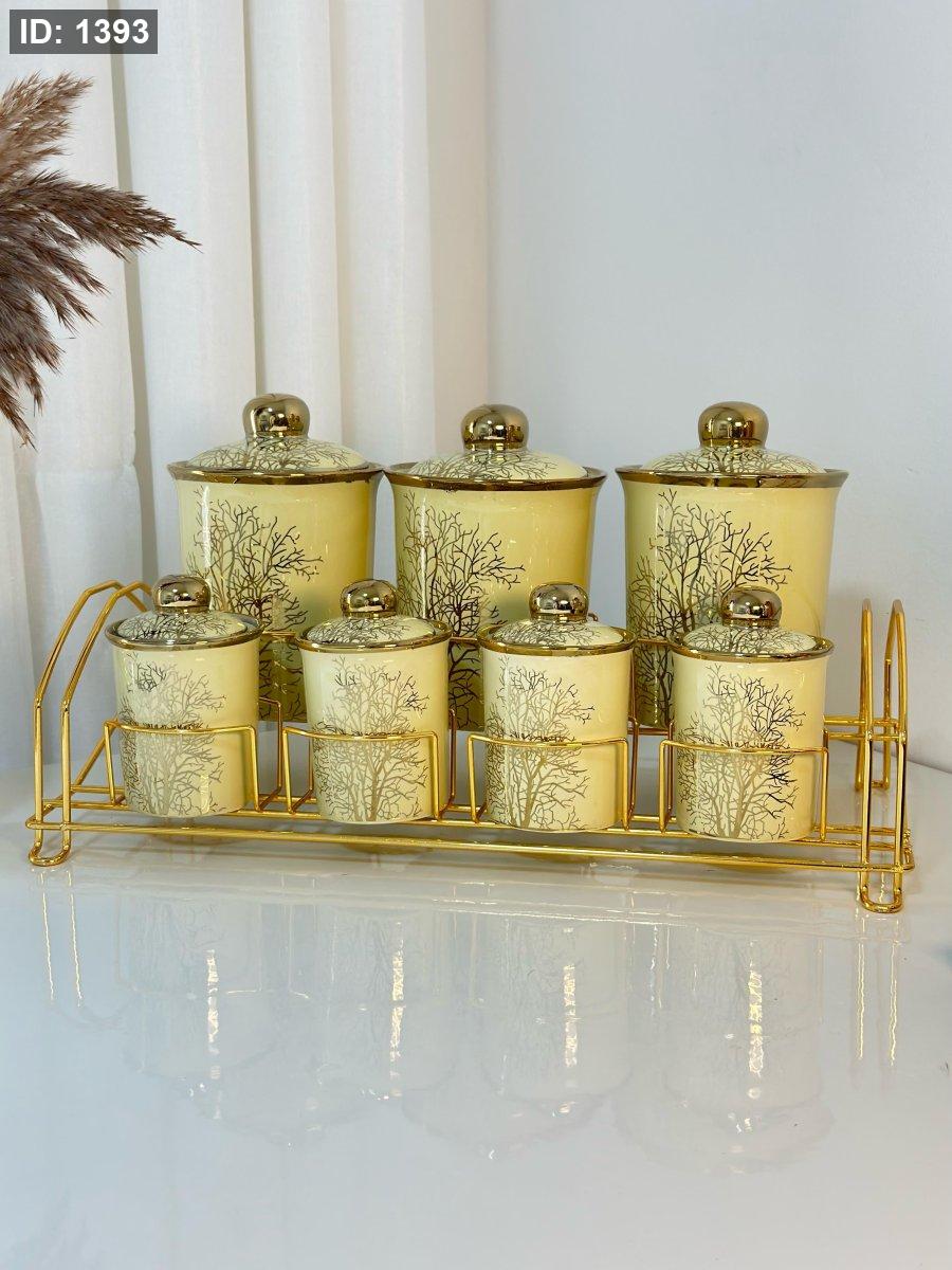 طقم بهار 7 قطع بورسلان مشجر حز ذهبي