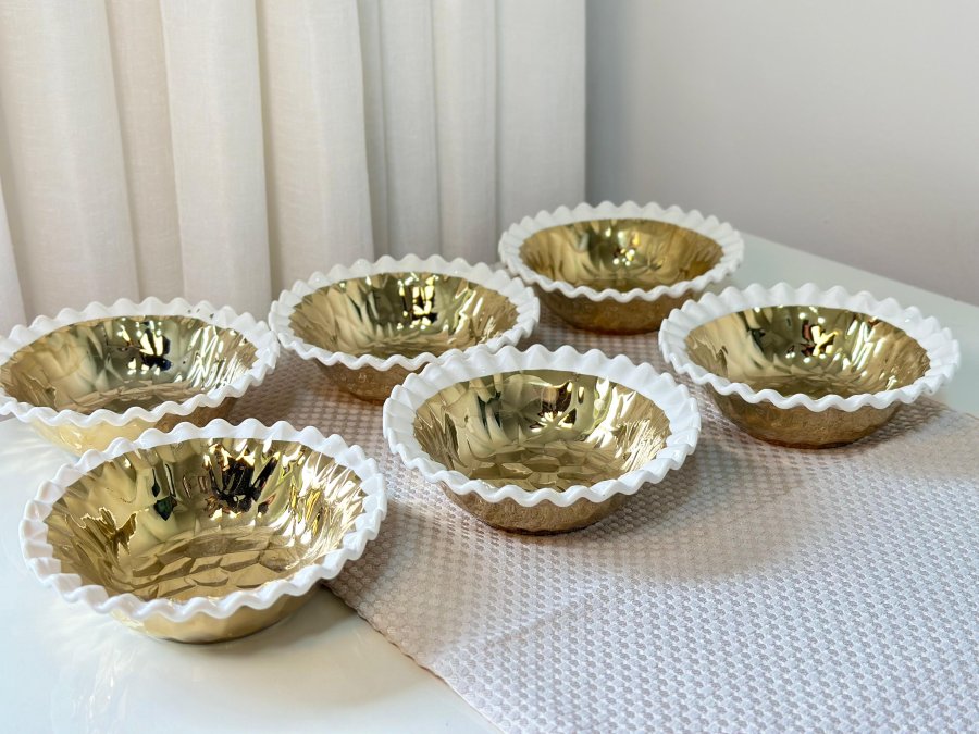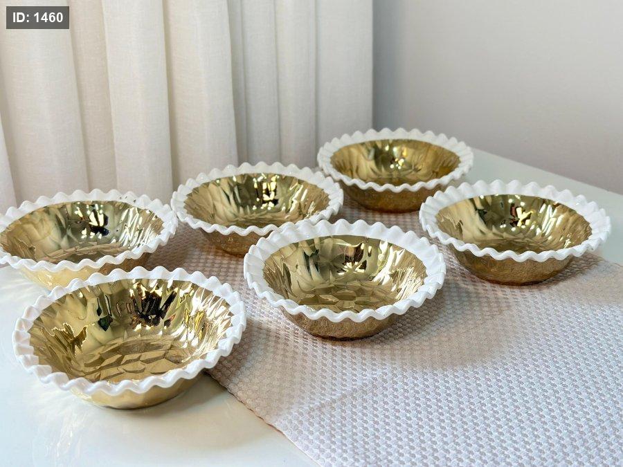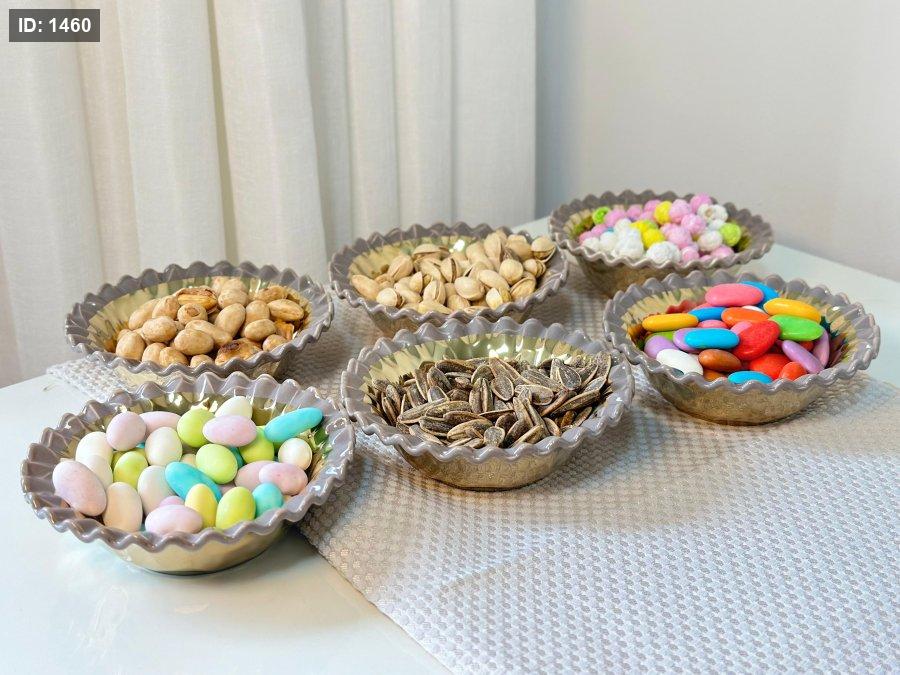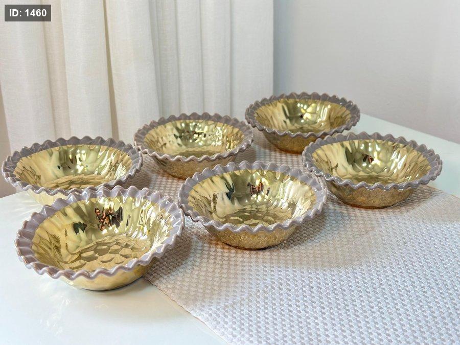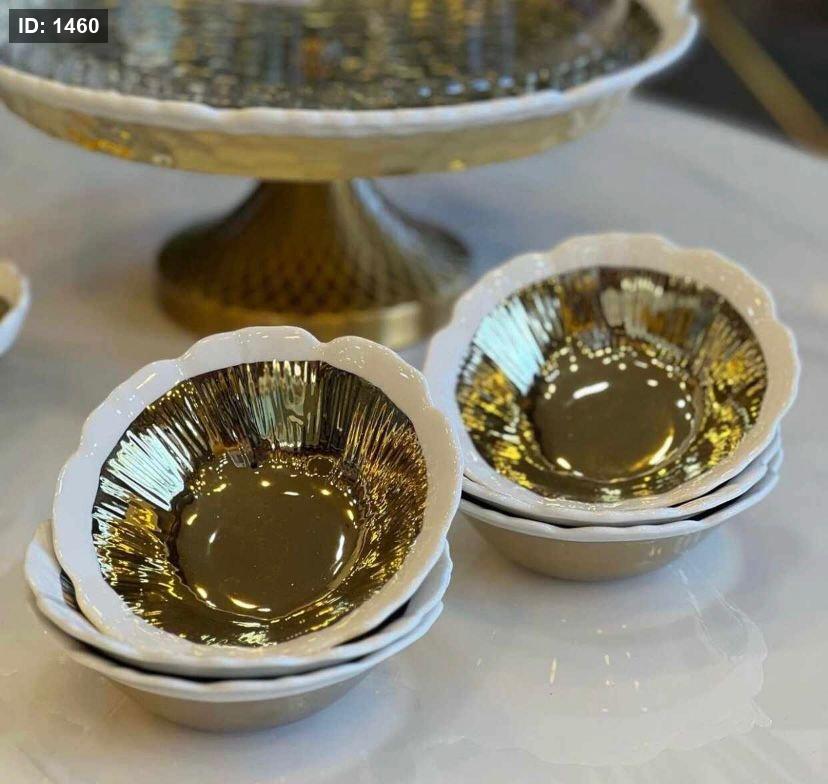 طقم/6 صحون بزر بورسلان ملون مشرف مذهب