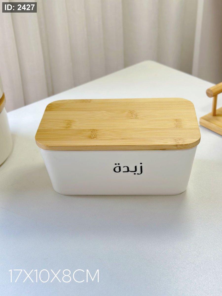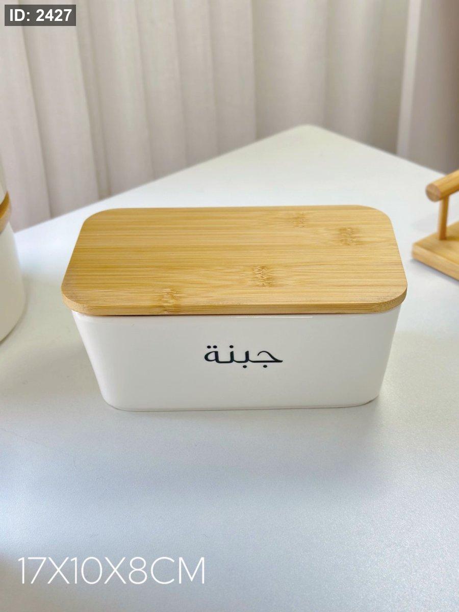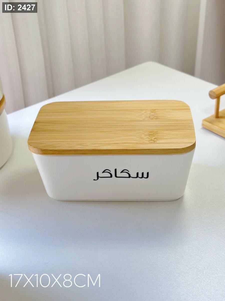 مرتبان بورسلان مستطيل غطاء بامبو كتابه
