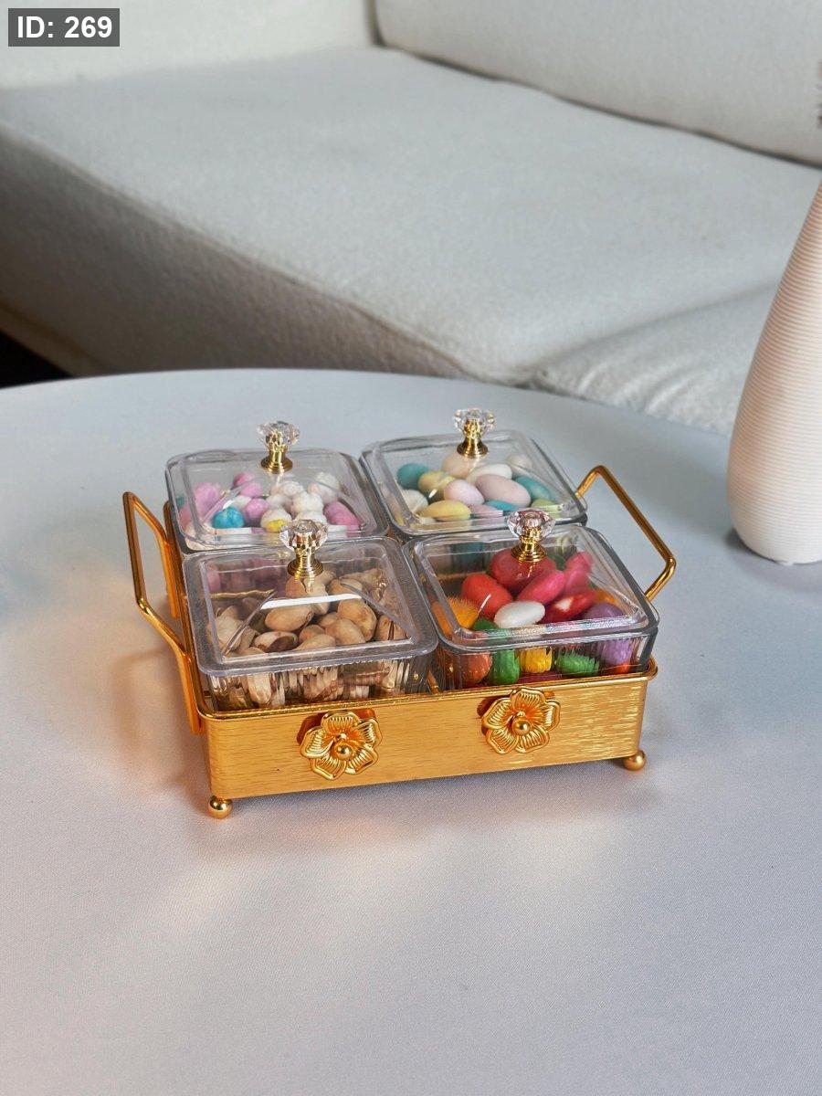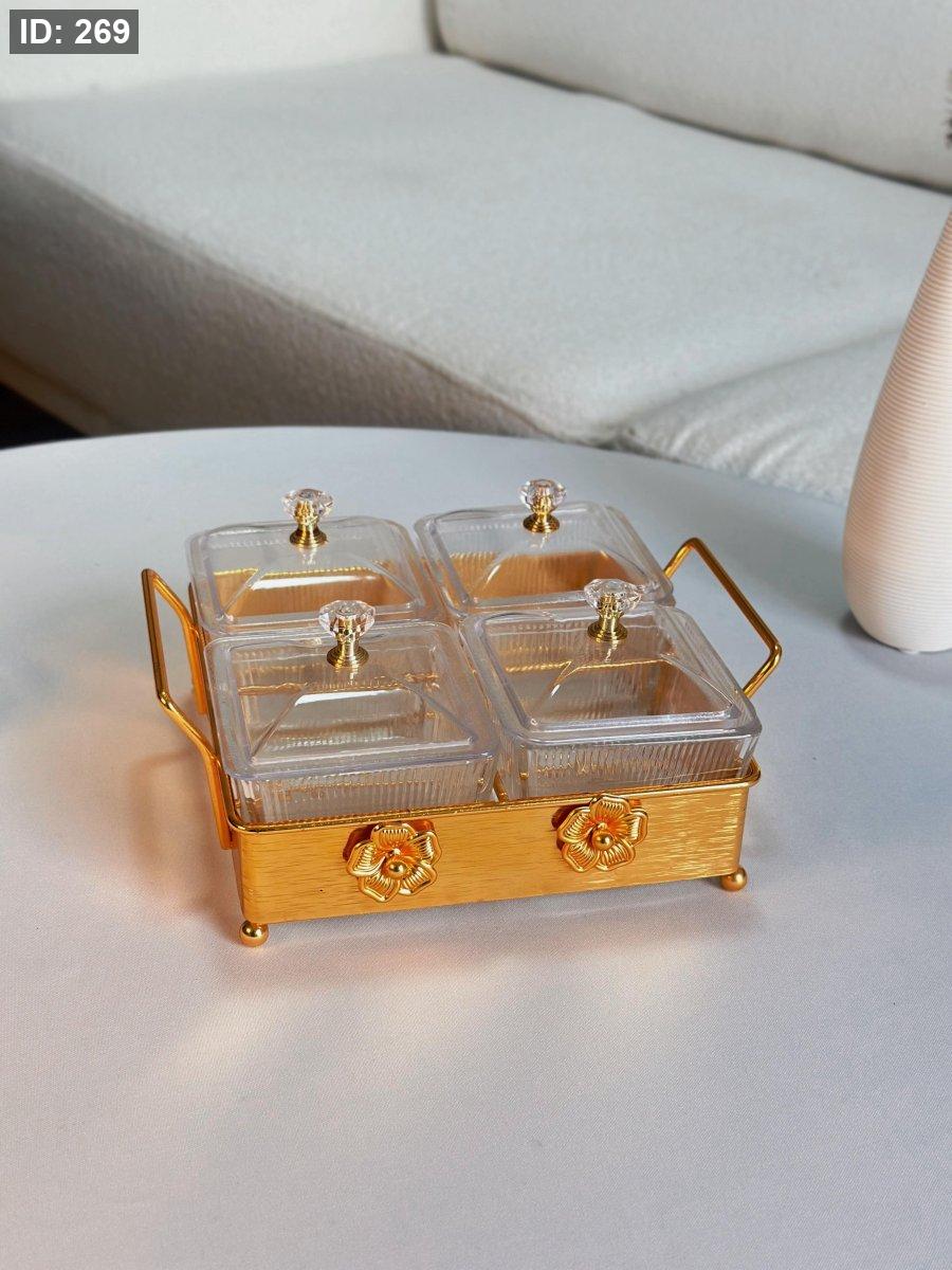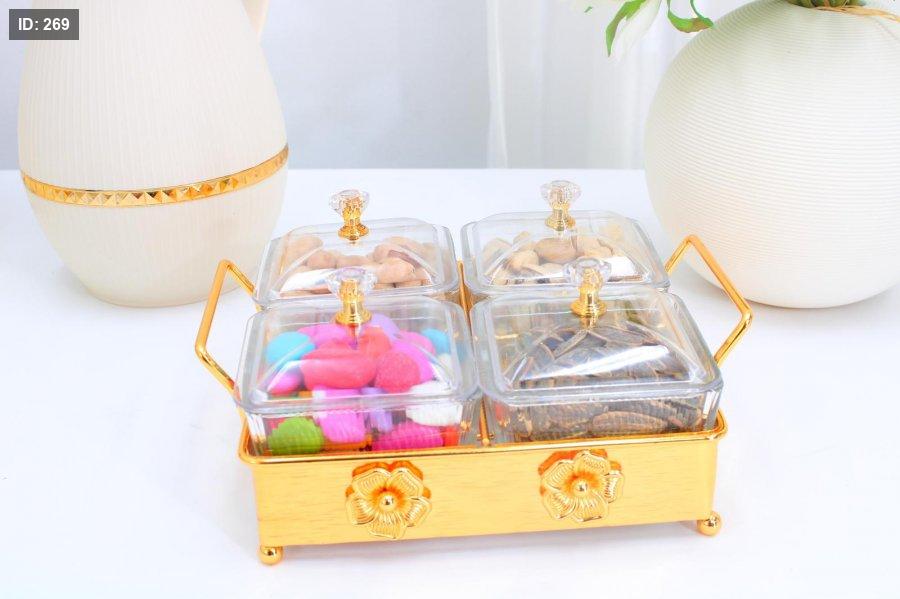 ستاند مكسرات/4 ذهبي غطاء اكرلك
