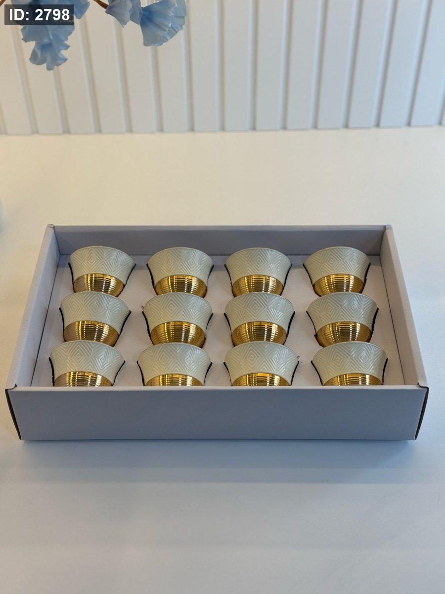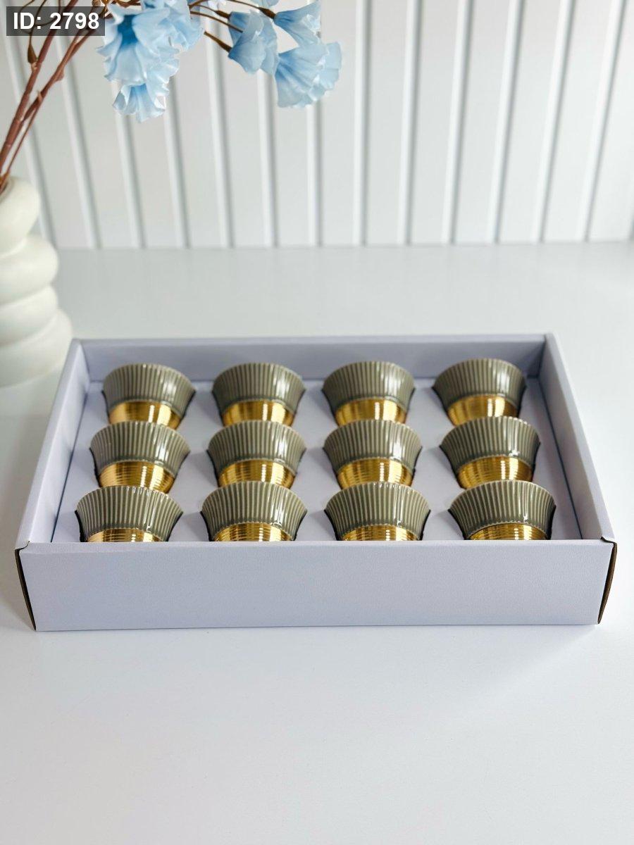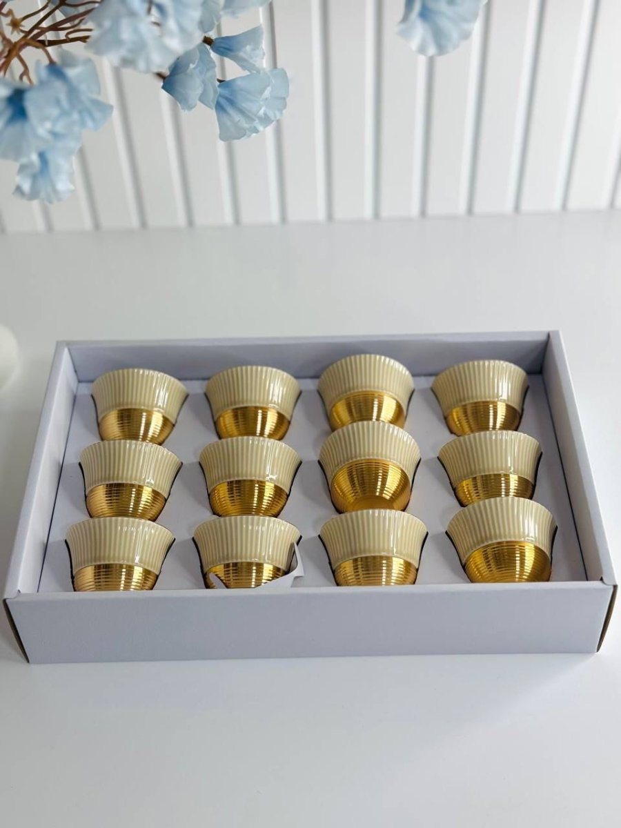 طقم/12 فناحين ساده امبر محزز قاعده معدن مذهب