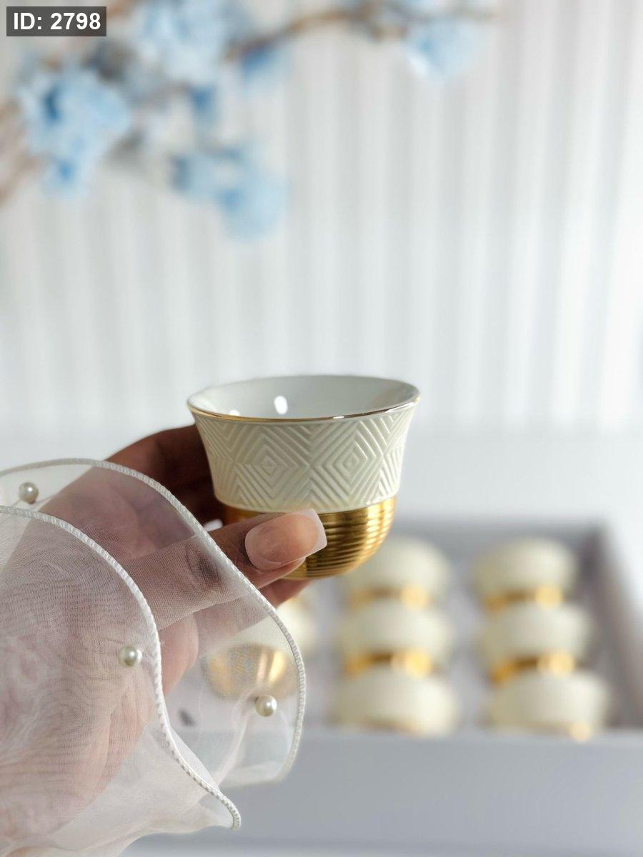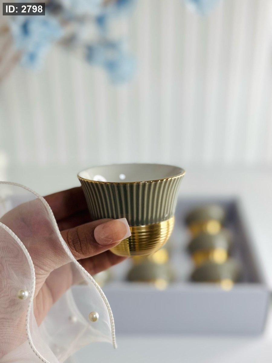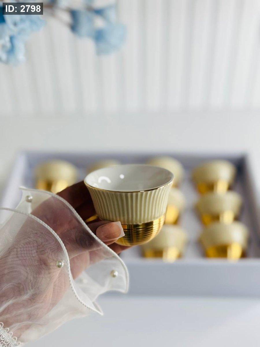 طقم/12 فناحين ساده امبر محزز قاعده معدن مذهب