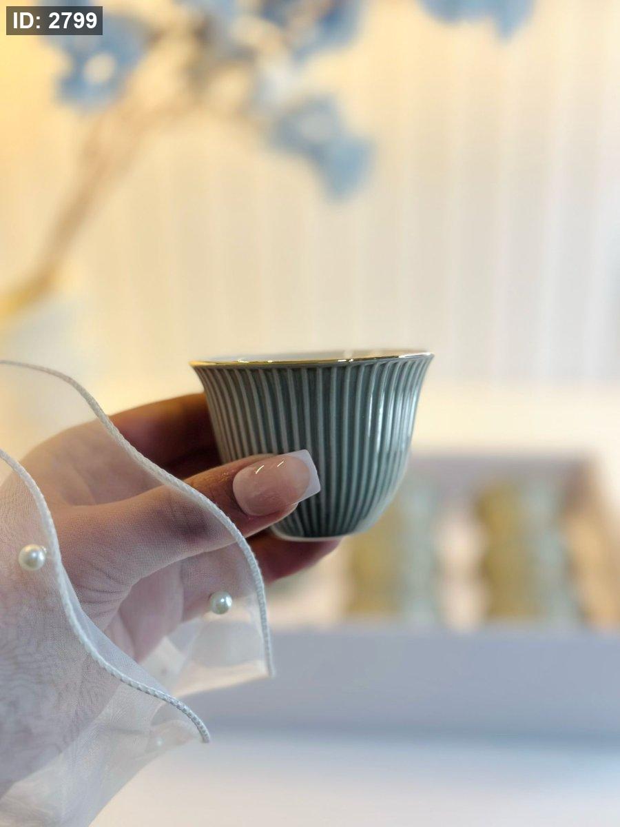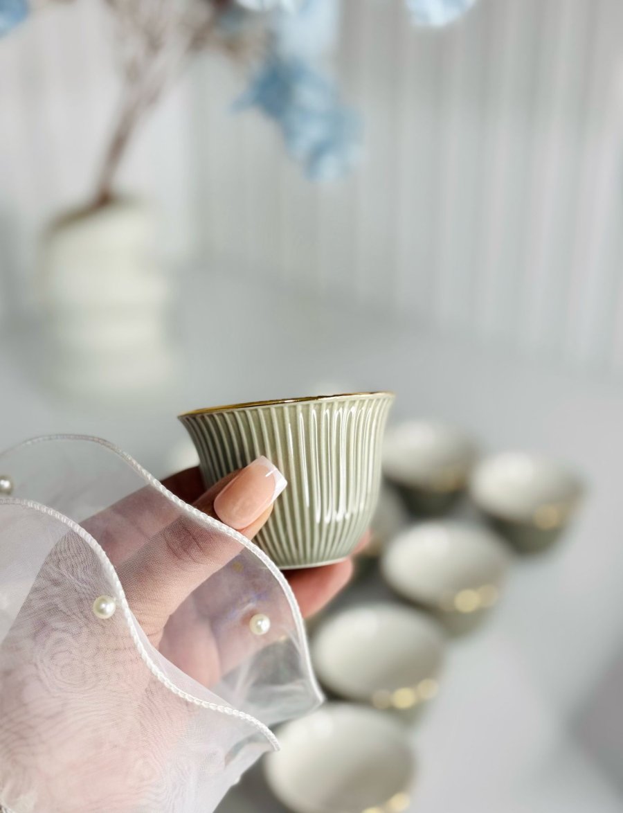 طقم/12 فناحين ساده امبر محزز حز مذهب