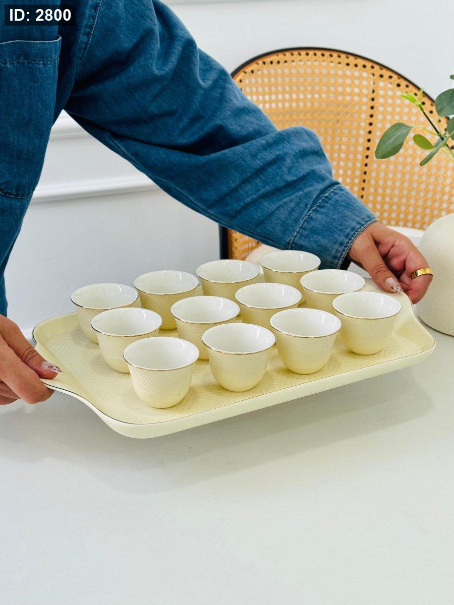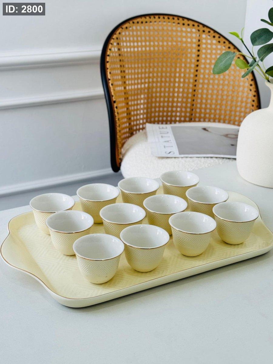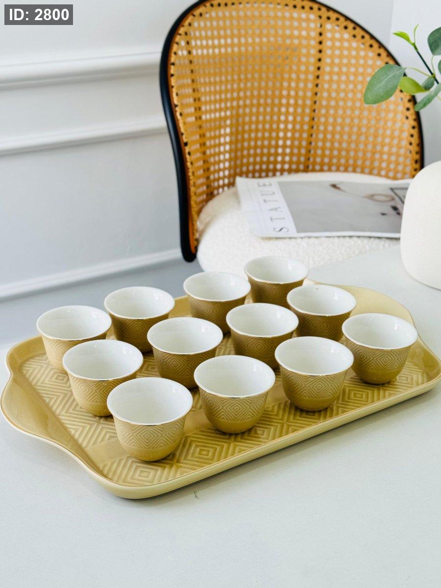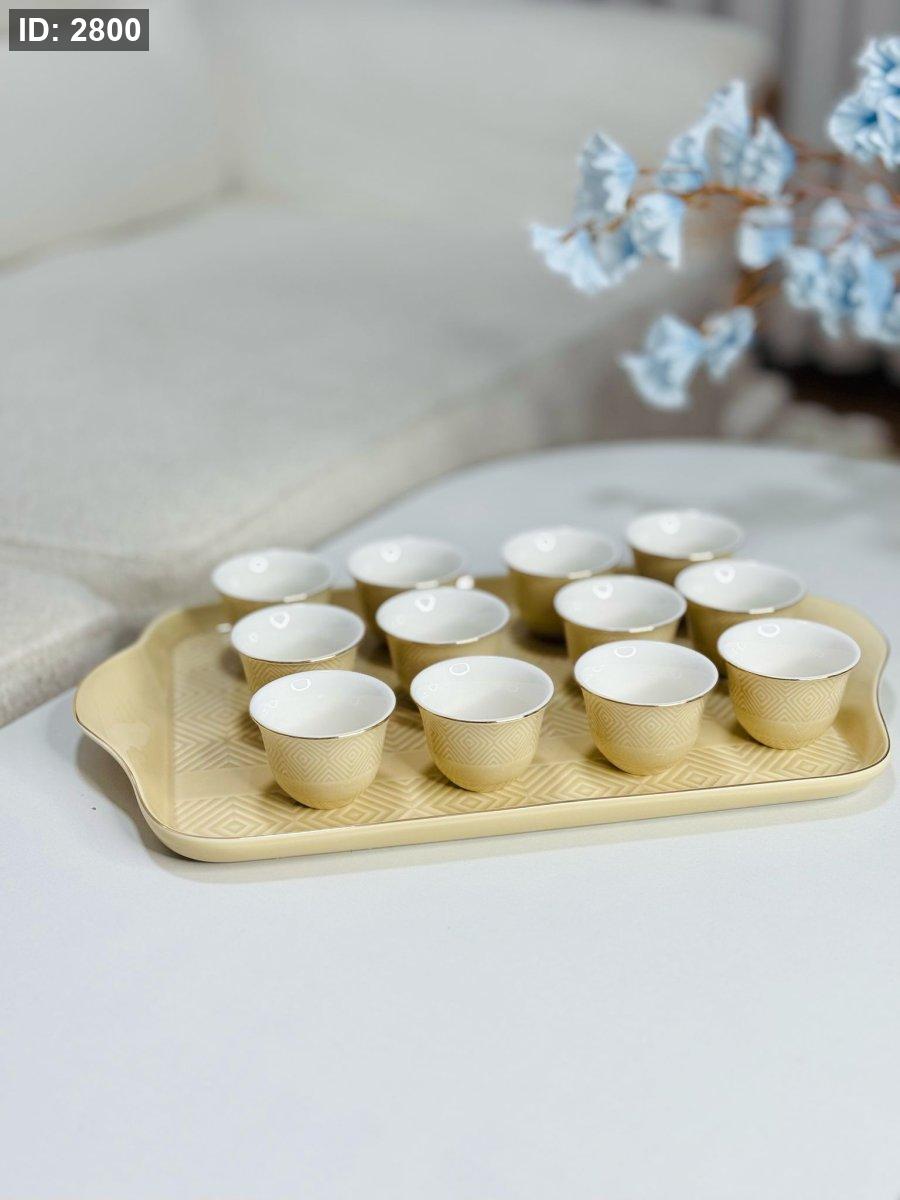 فناجين ساده/12مع صينيه امبر محزز مذهب