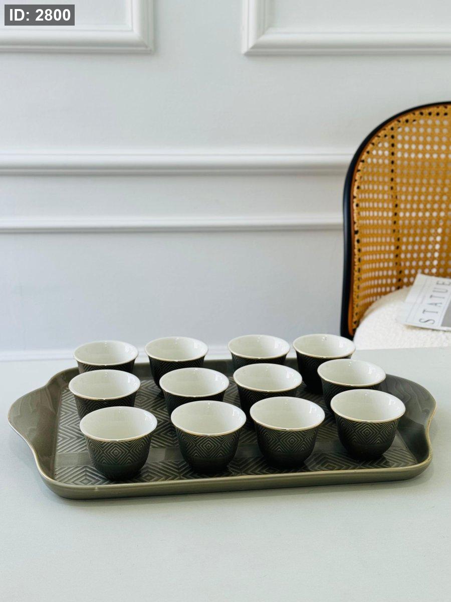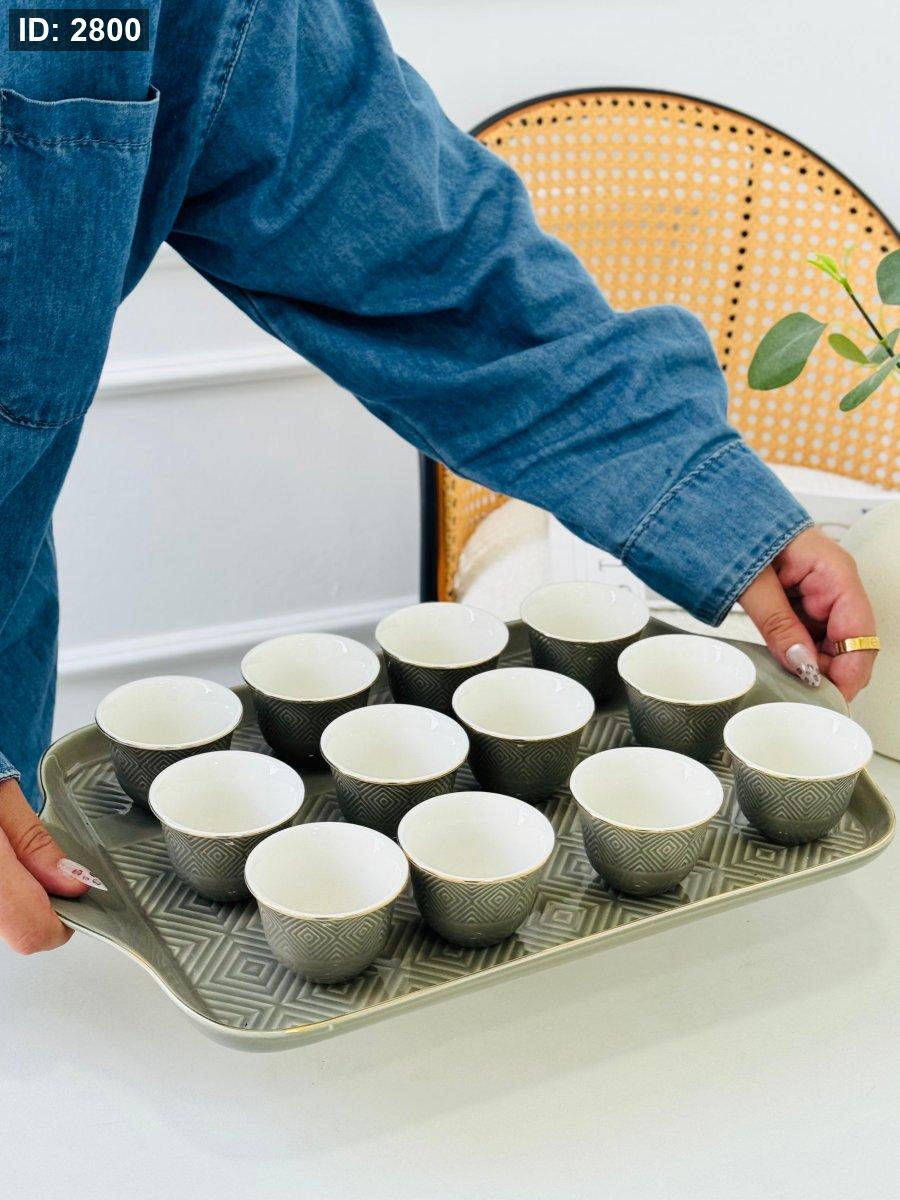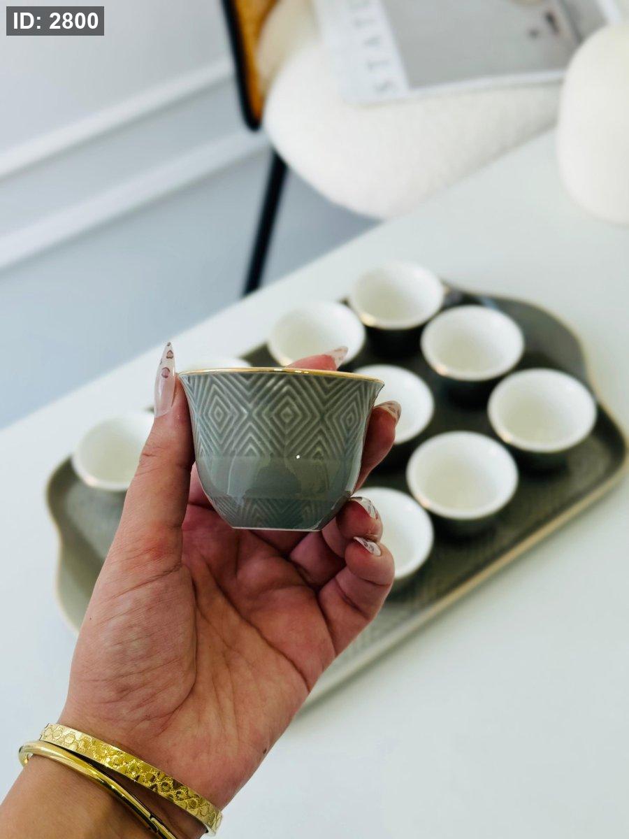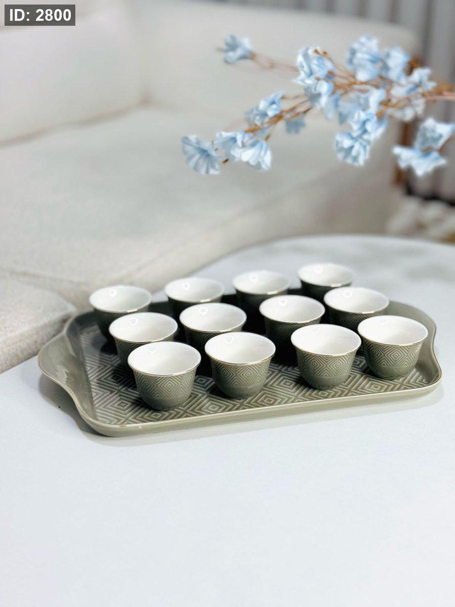 فناجين ساده/12مع صينيه امبر محزز مذهب