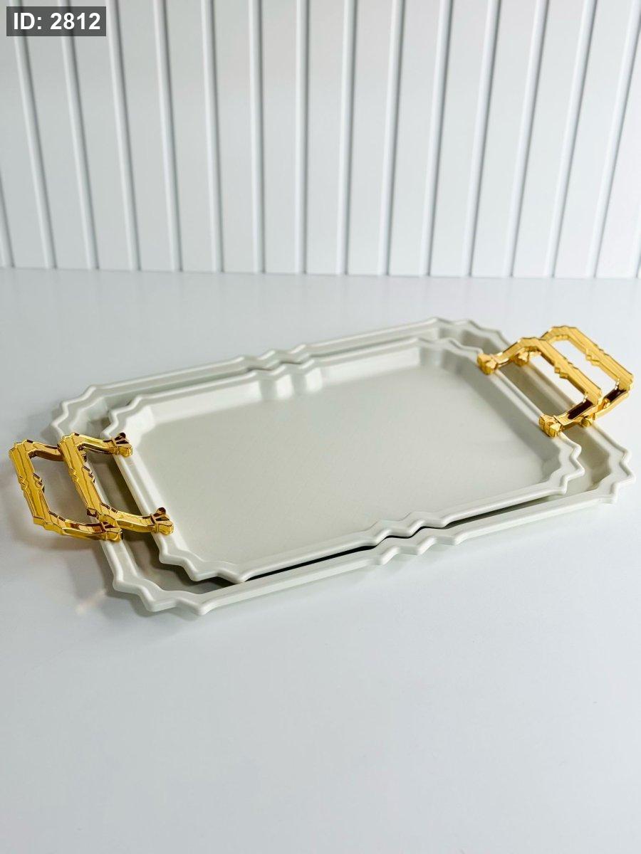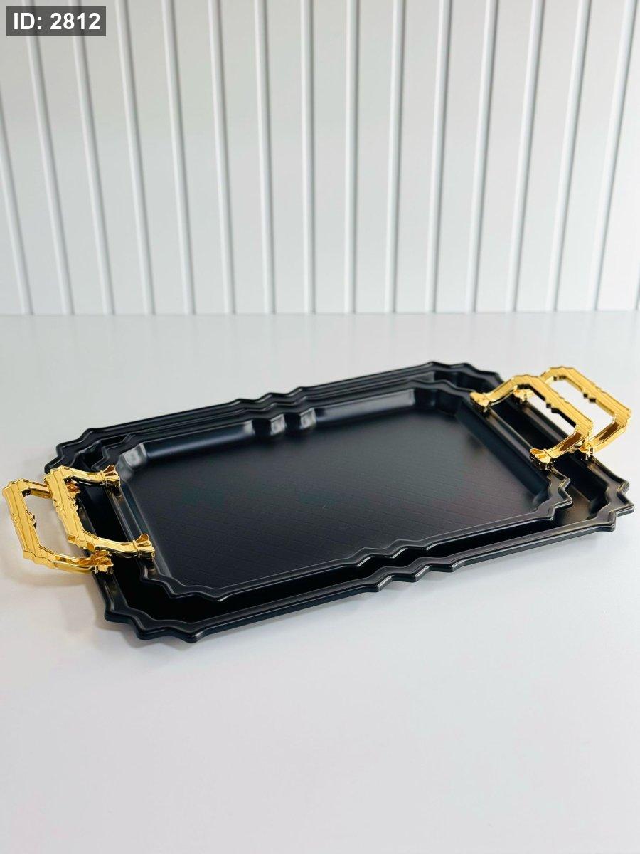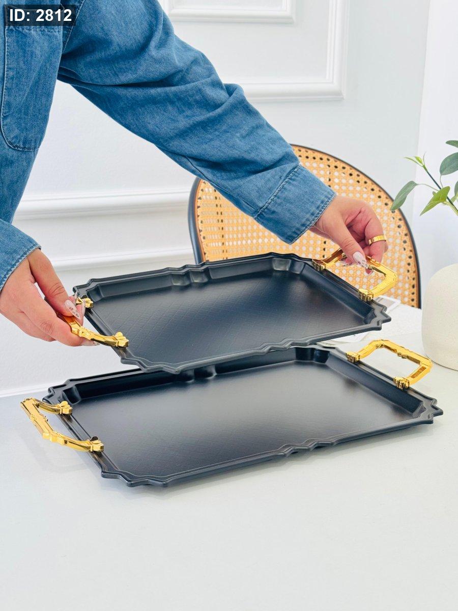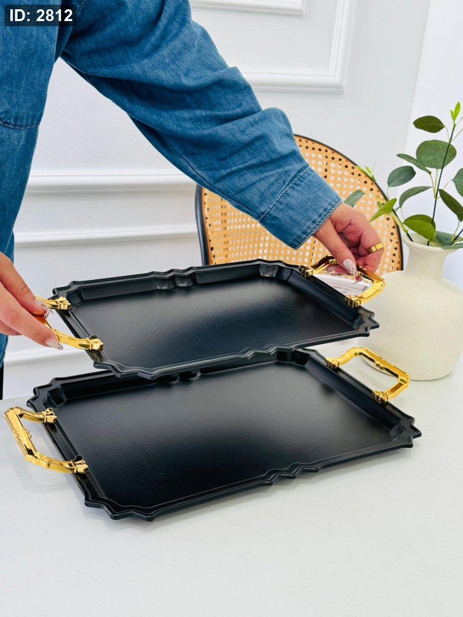 طقم/2 صواني مستطيل مزخرف مذهب