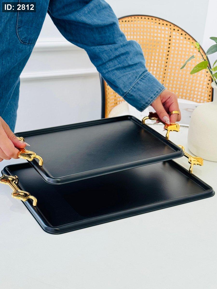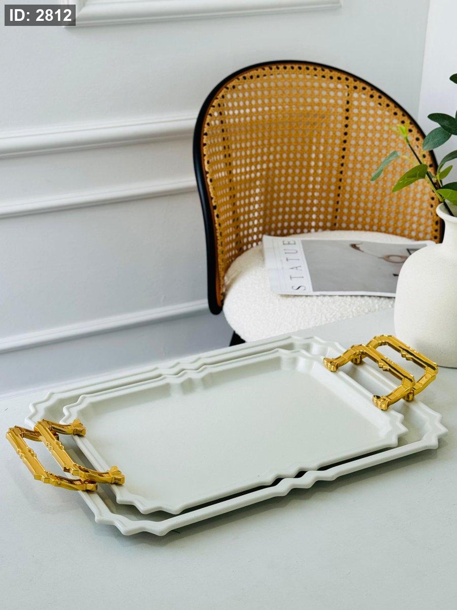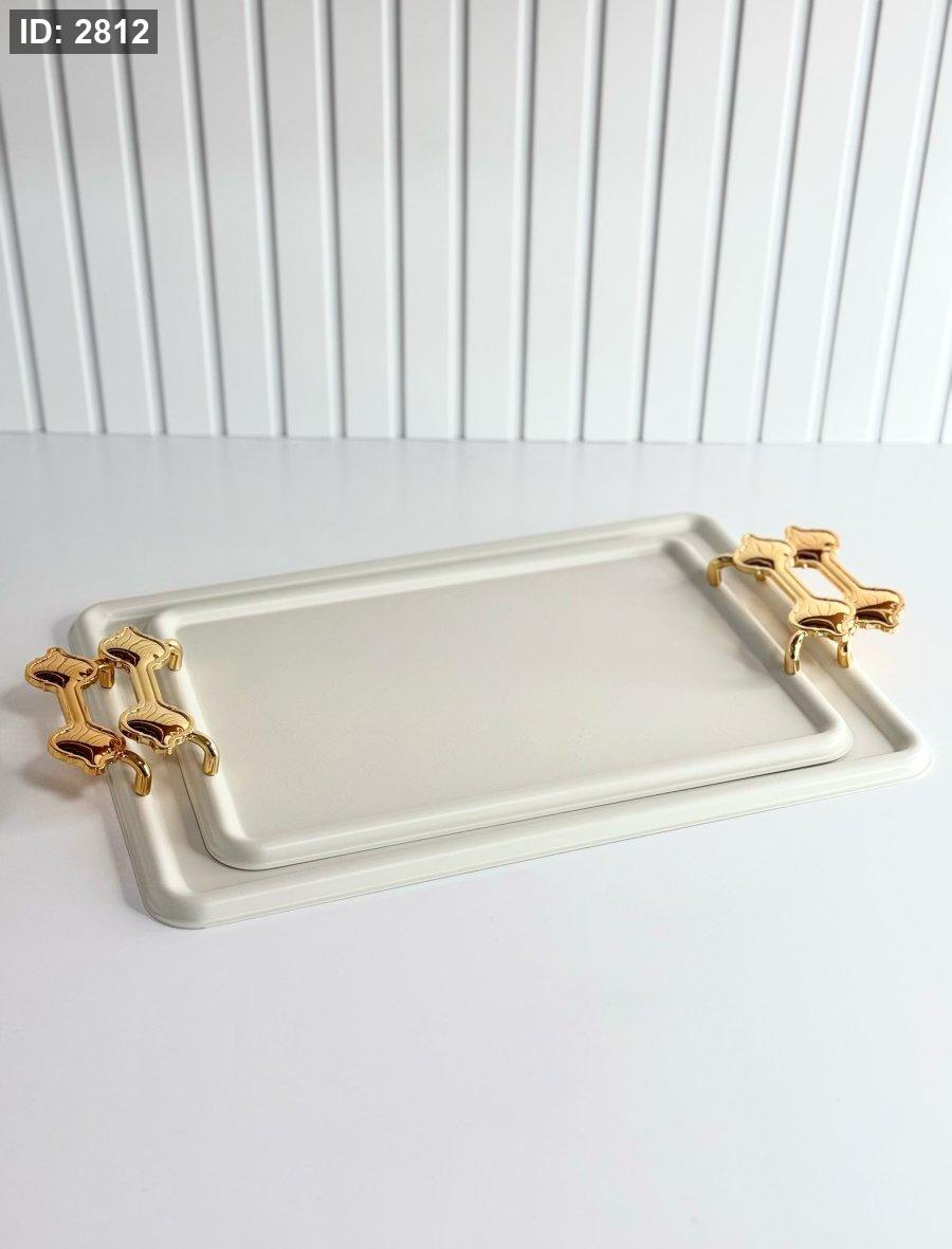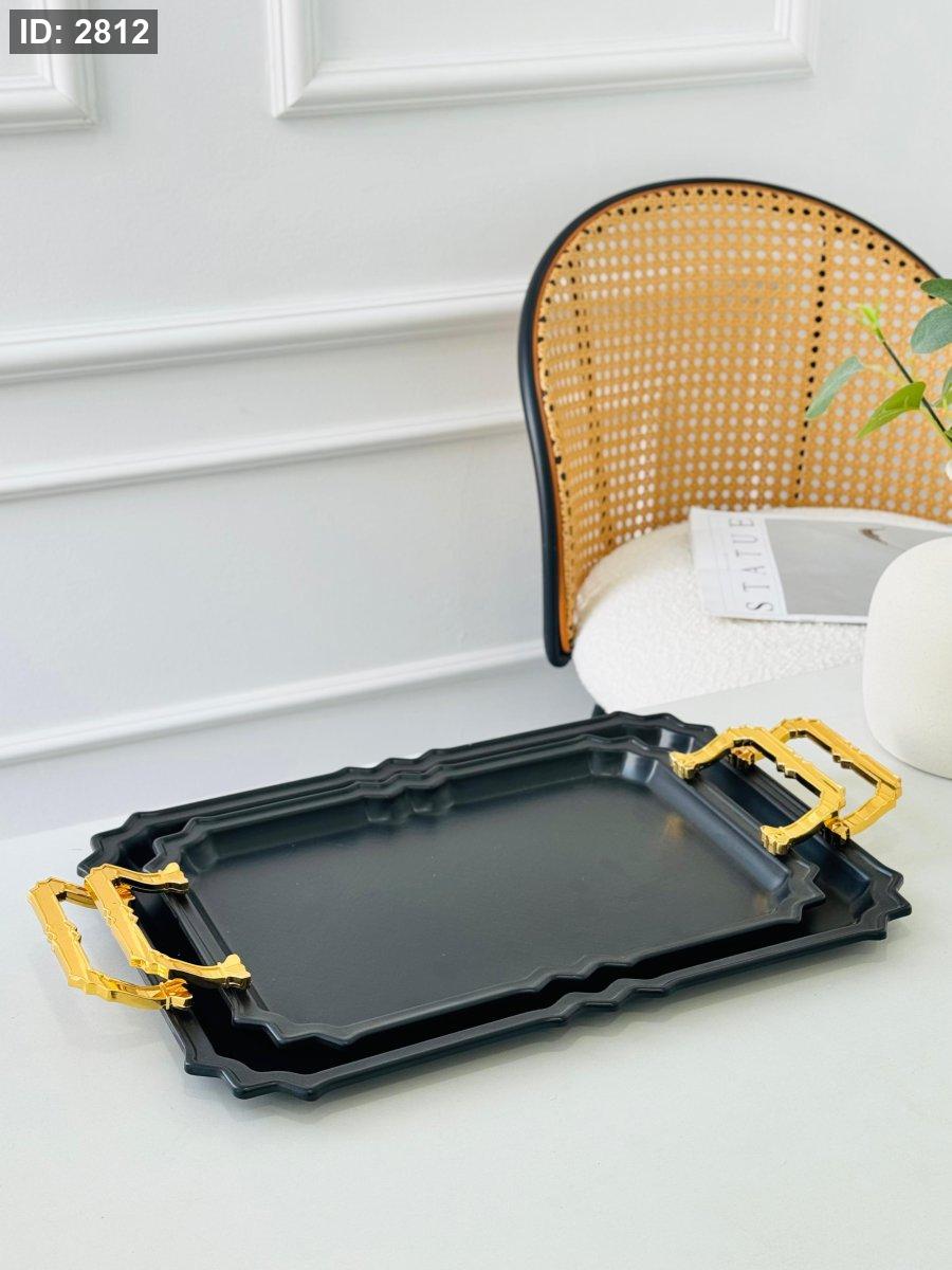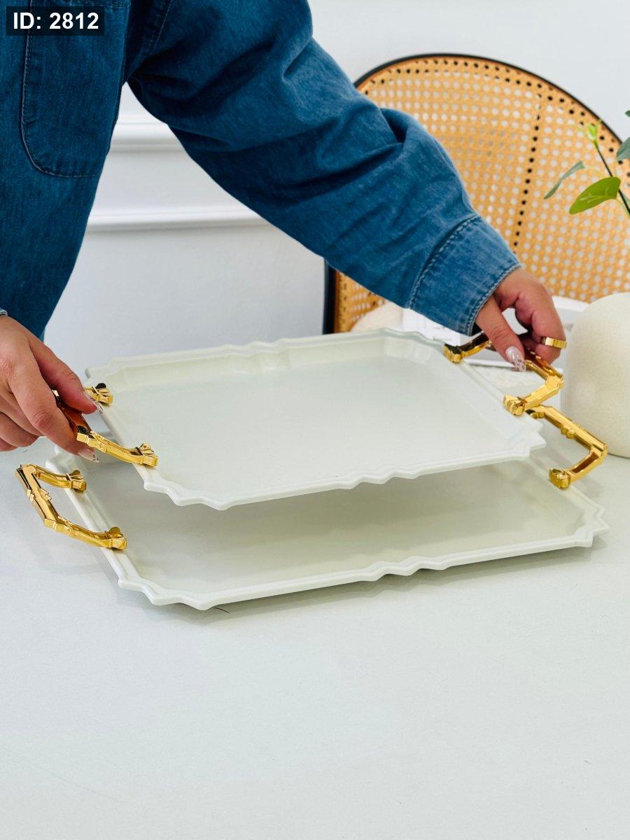 طقم/2 صواني مستطيل مزخرف مذهب