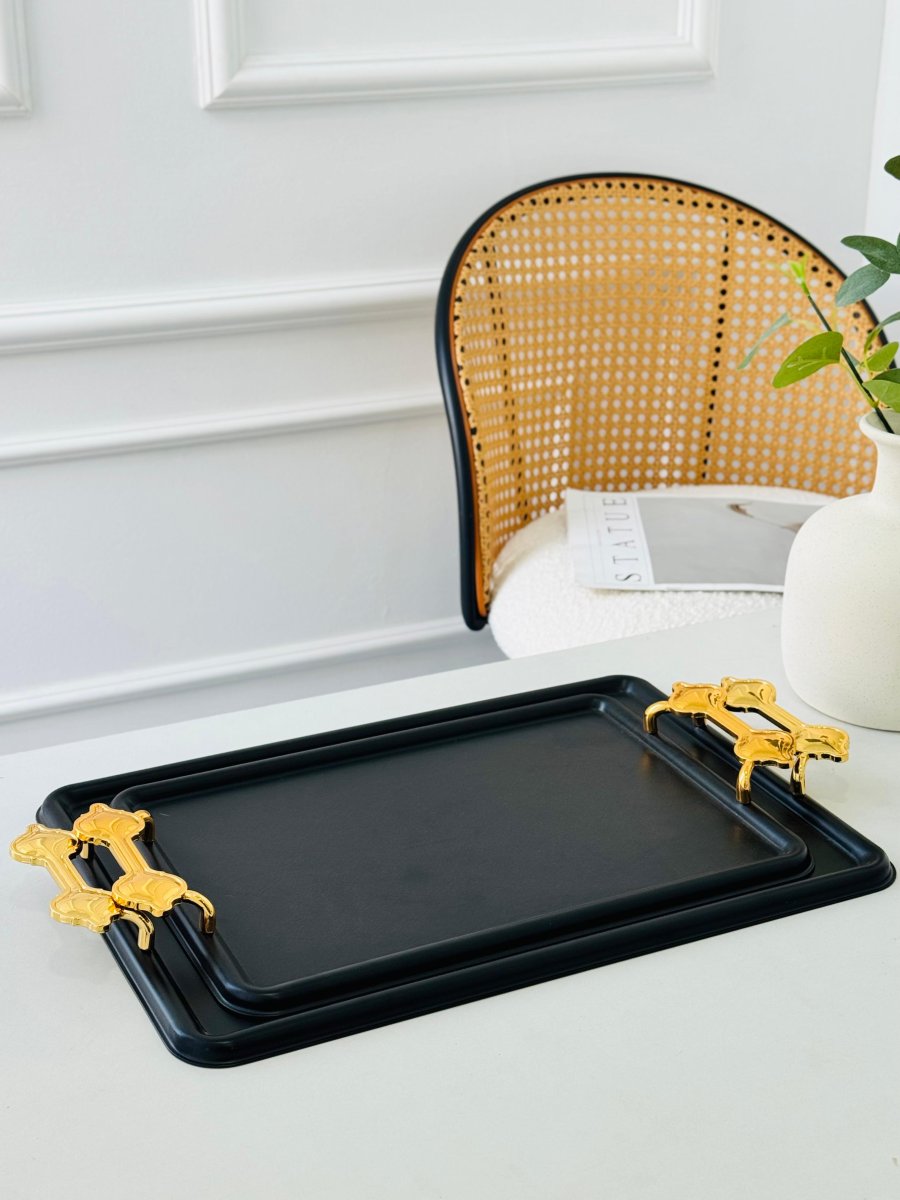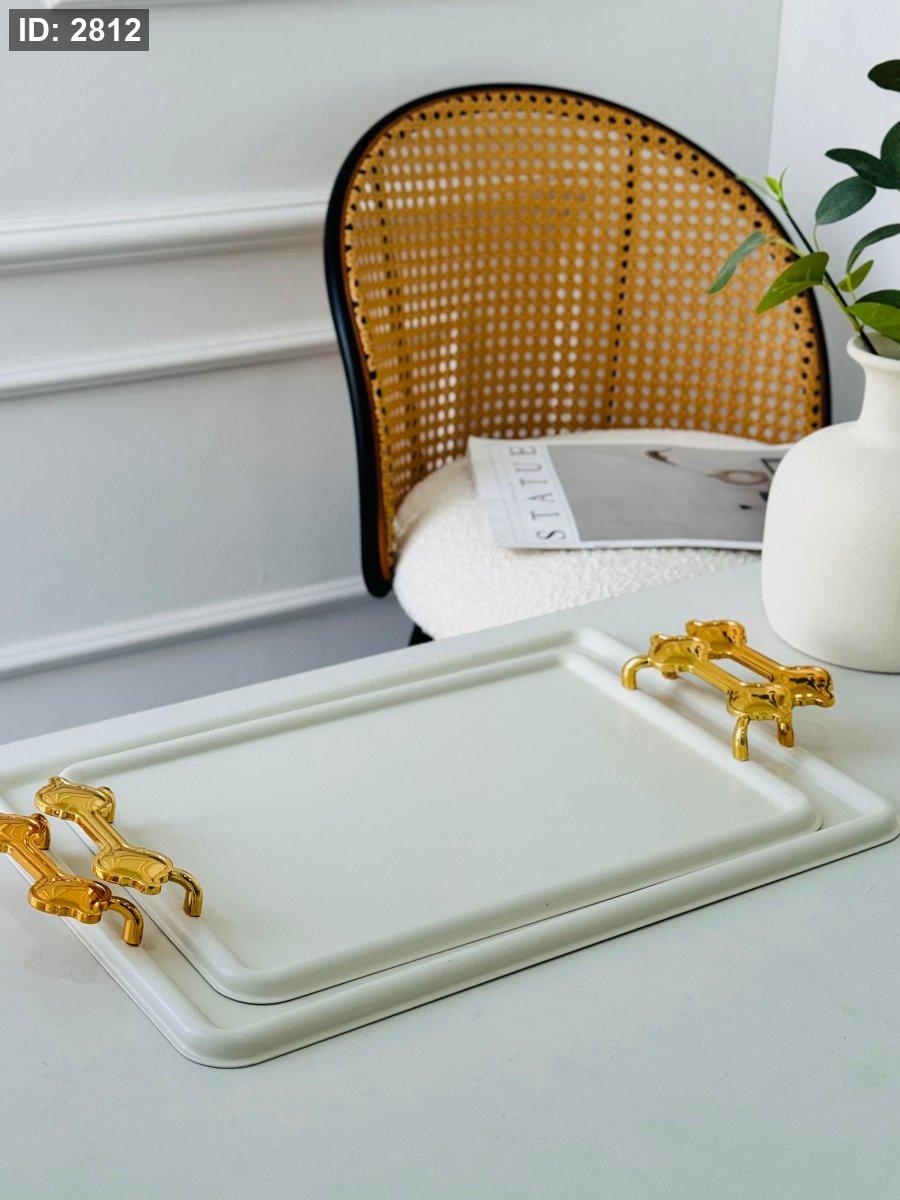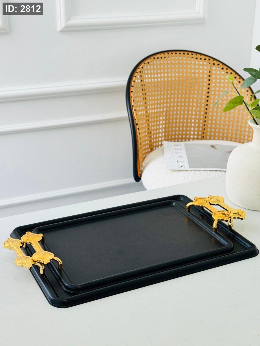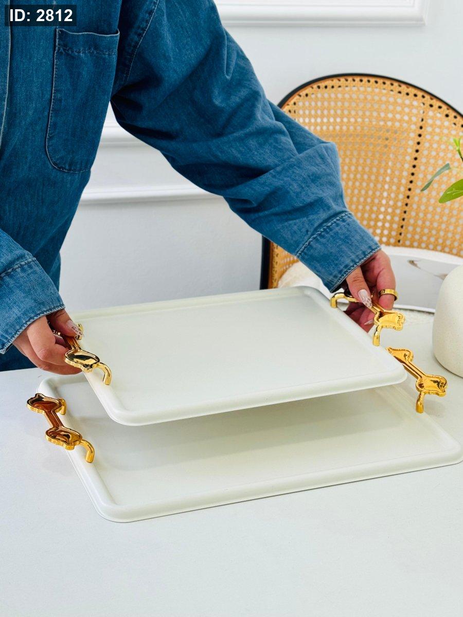 طقم/2 صواني مستطيل مزخرف مذهب