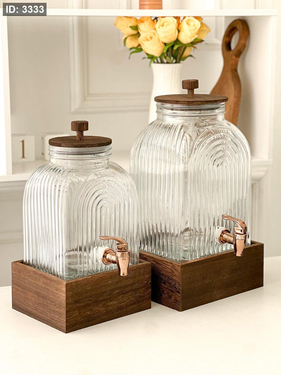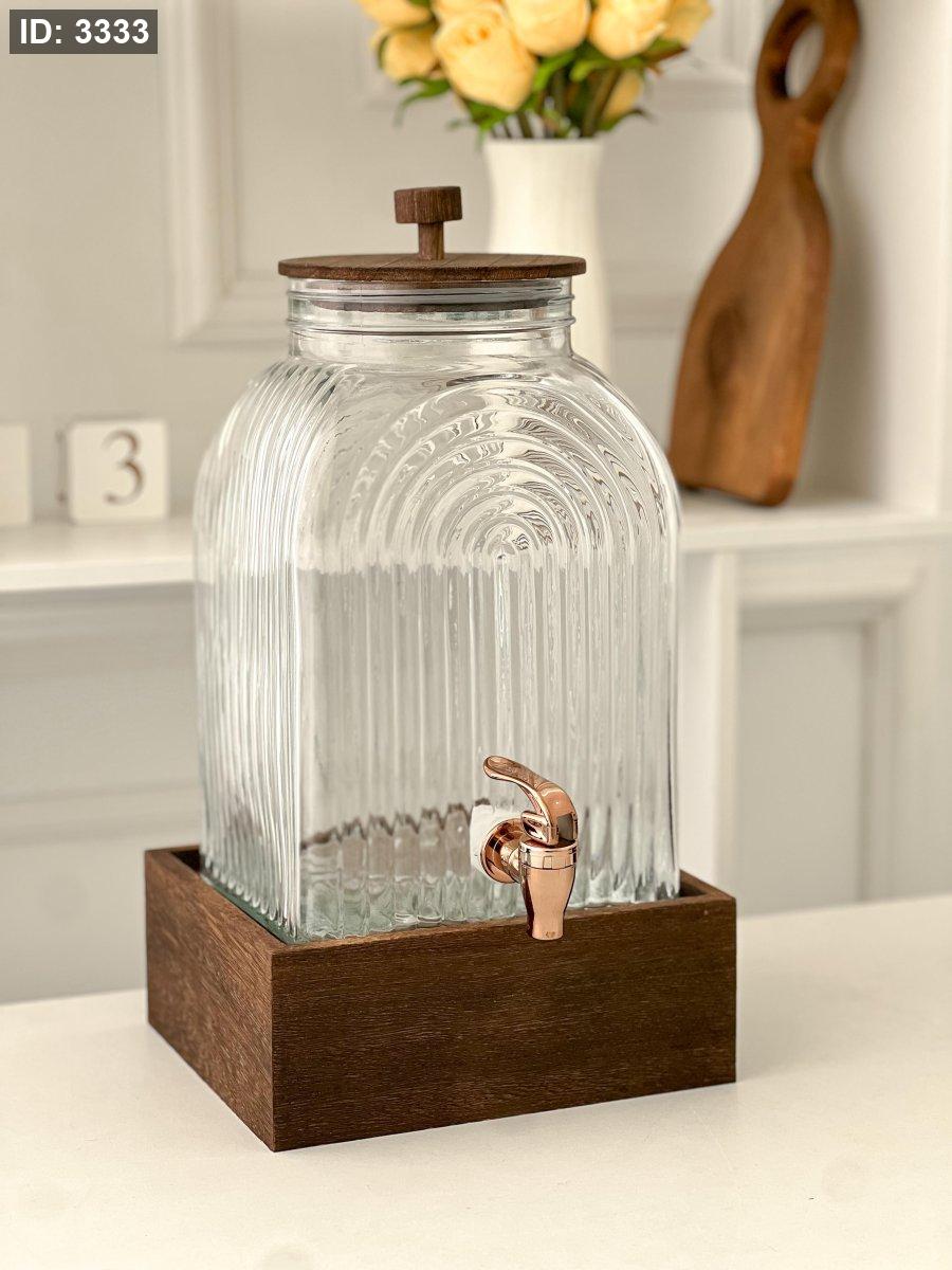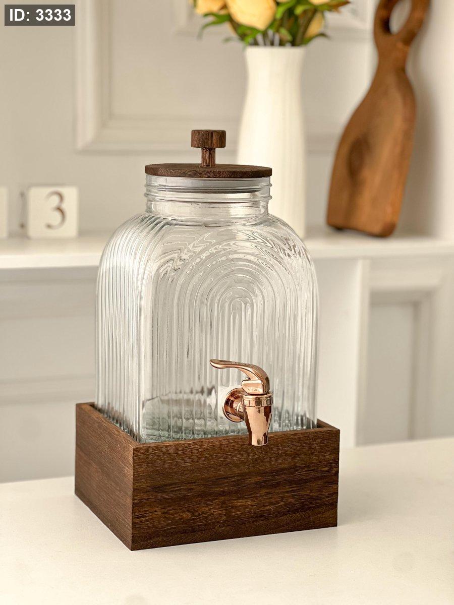مرتبان زجاج محزز+حنفيه ستاند خشب