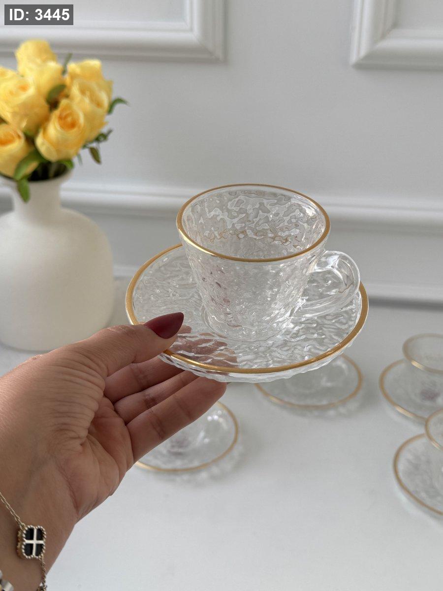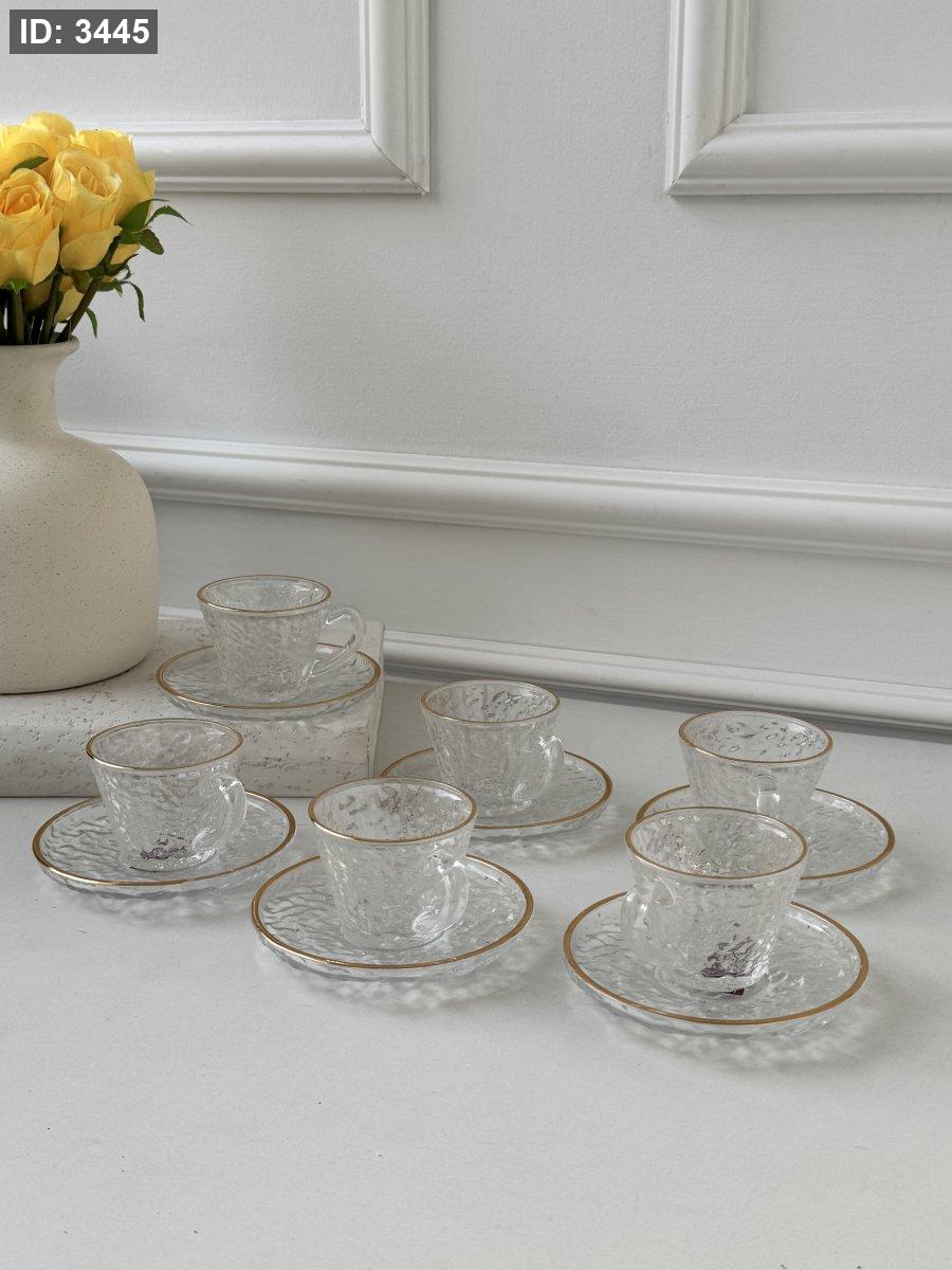 طقم6+6فناجين قهوه زجاج مثلج حز مذهب