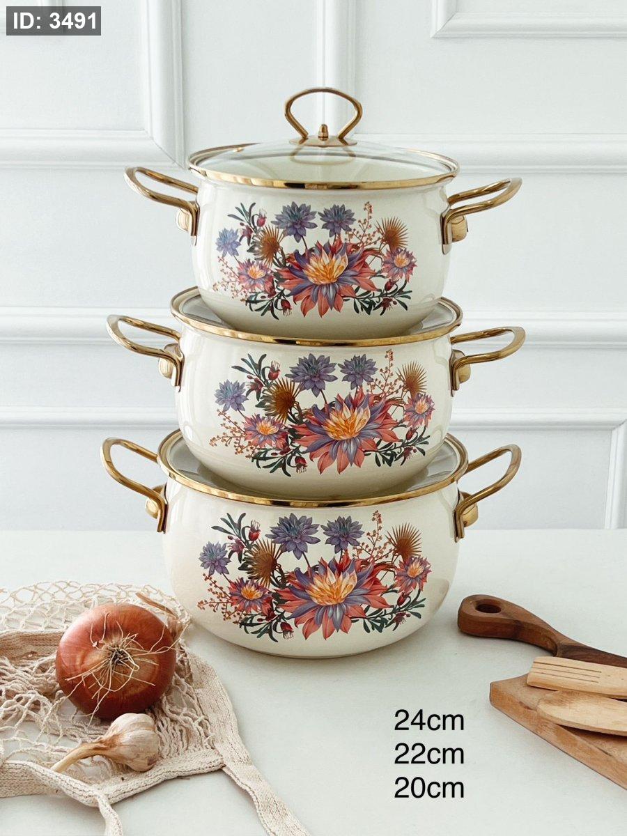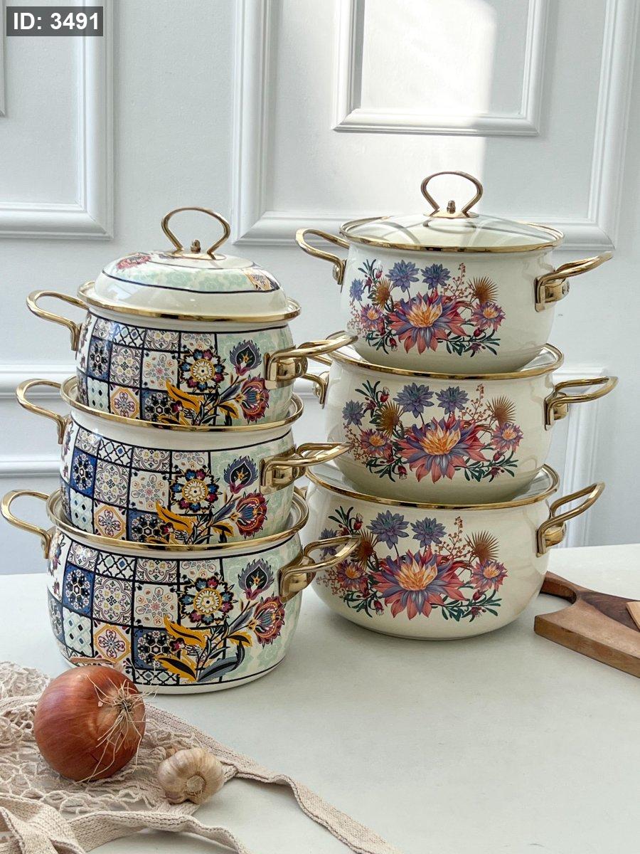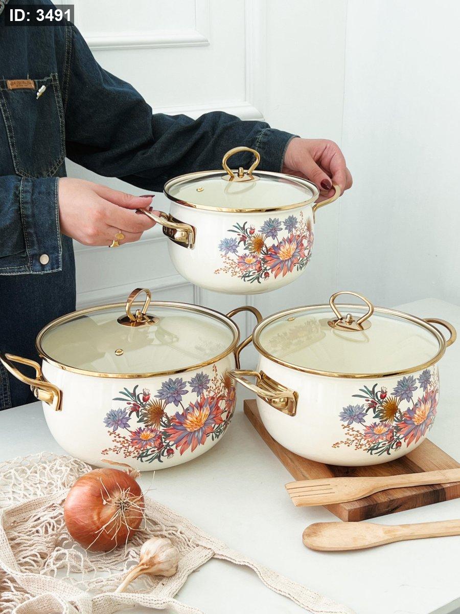 طقم طناجر توتيا/3 مورد يد ستانلس ذهبي
