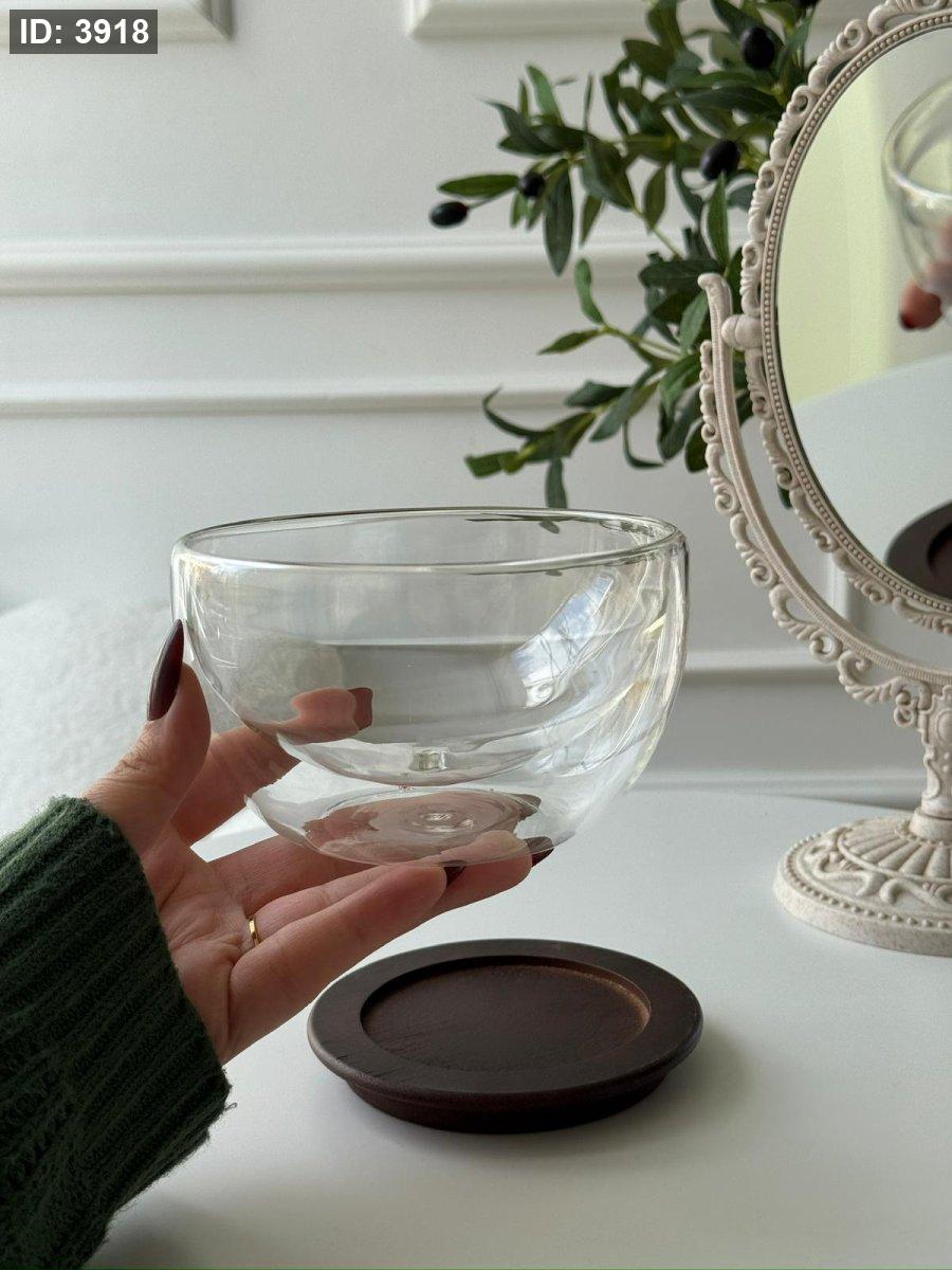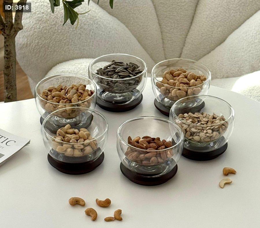 صحن مكسرات مع قاعده خشب دبل كلاس