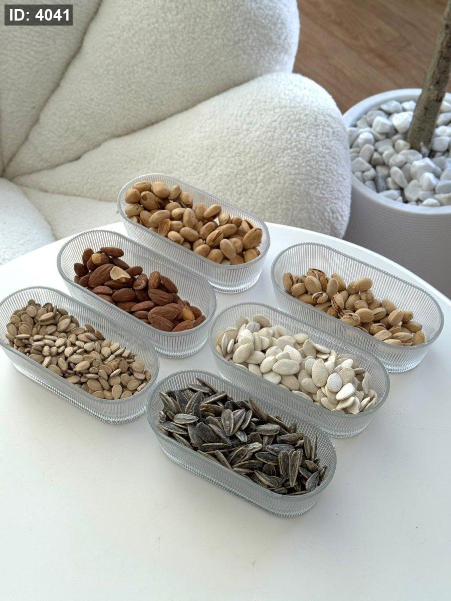 طقم 6 صحون مكسرات شفاف