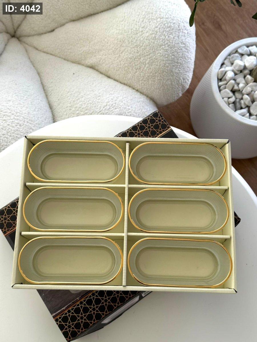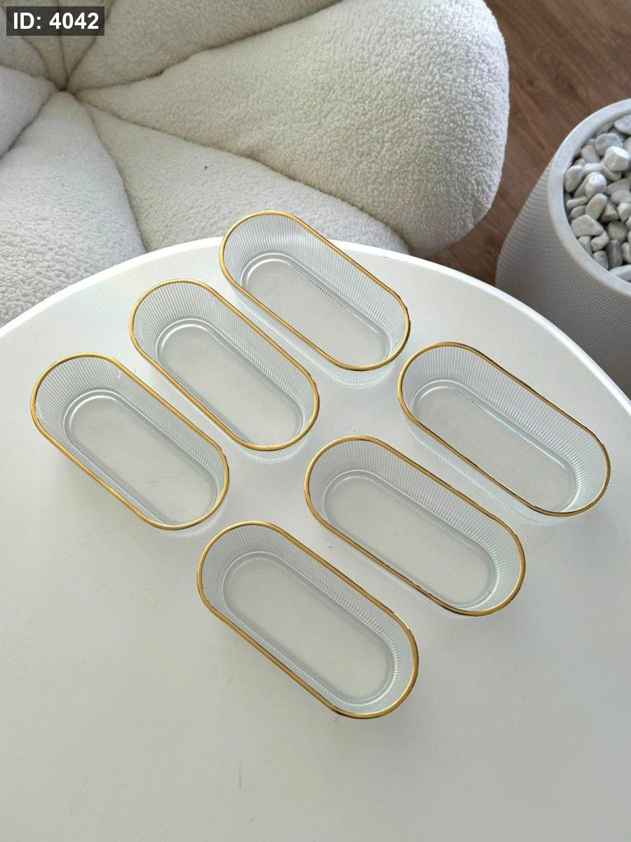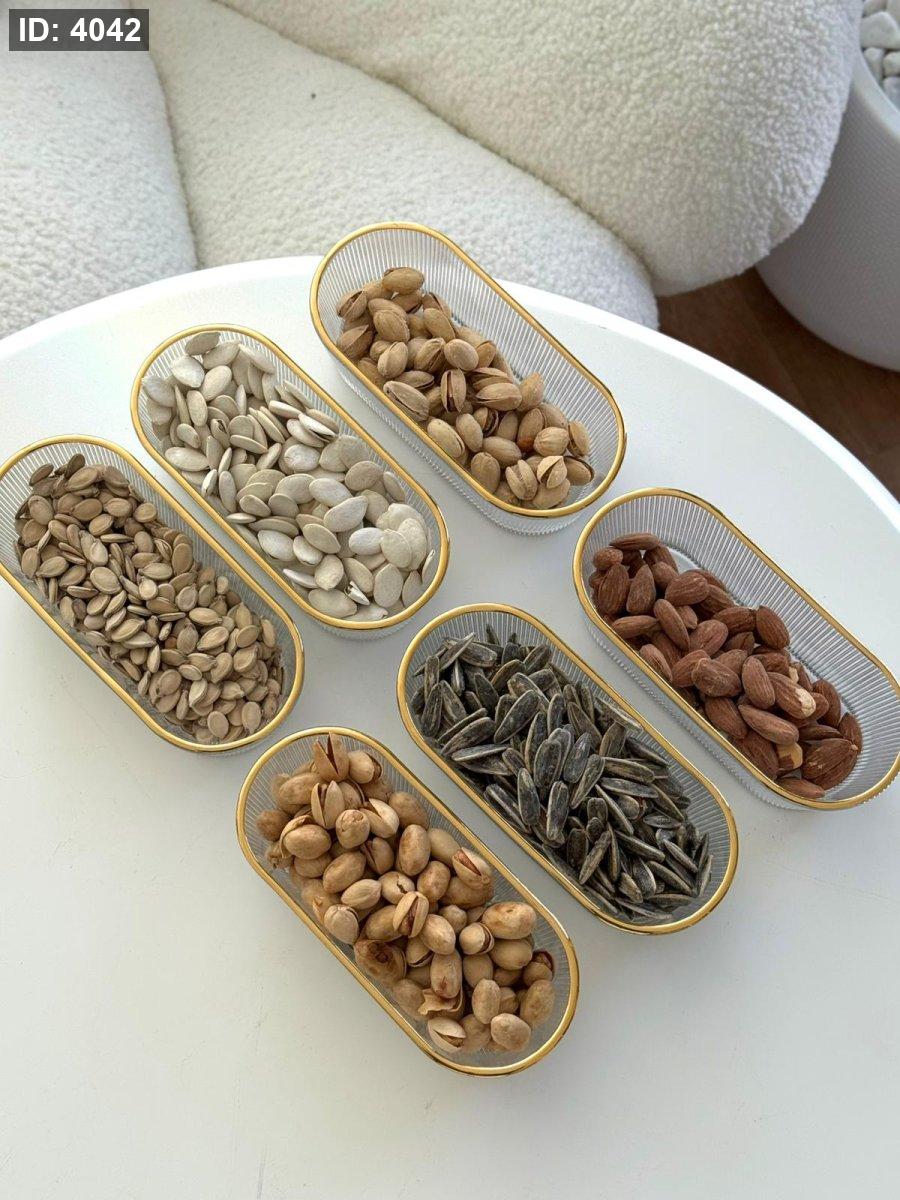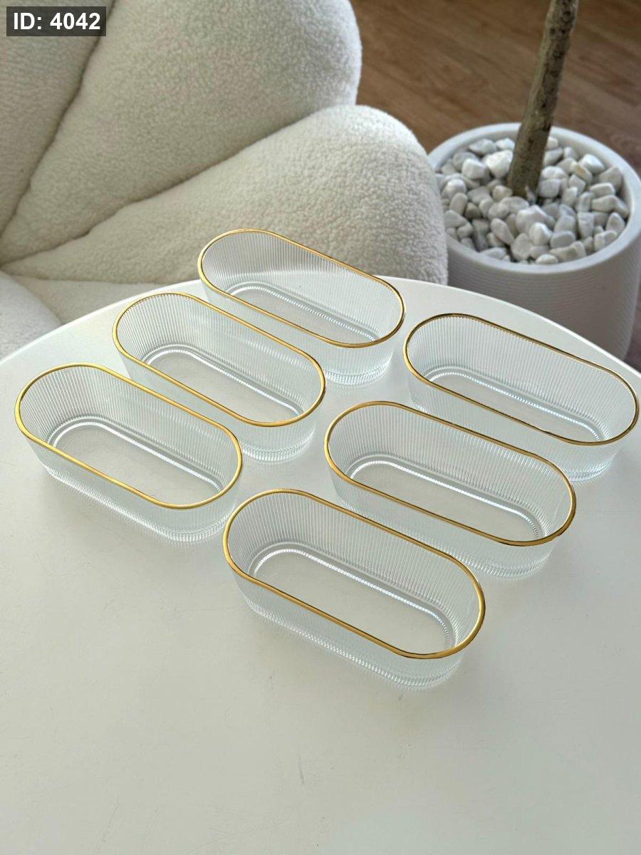 طقم 6 صحون مكسرات شفاف حز ذهبي