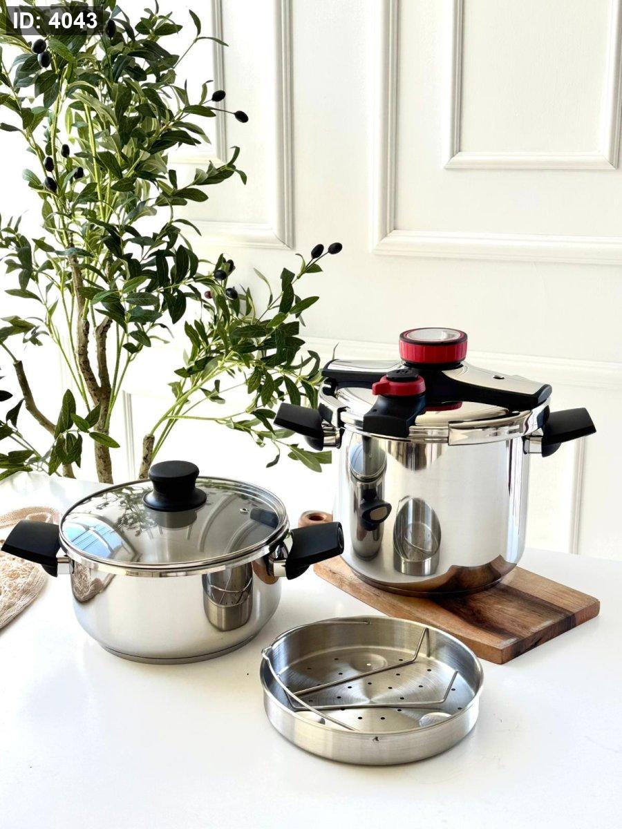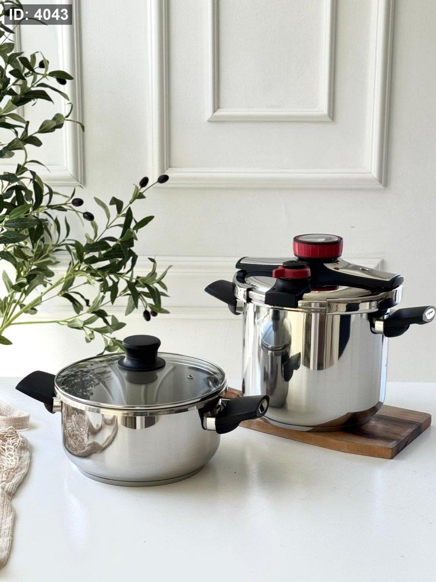 طقم طناجر ضغط كبسه ستيل 4 لتر و 7 لتر