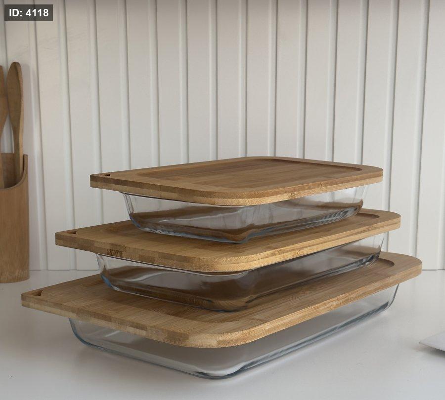 طقم بايركس 3 قطع غطاء بامبو مستطيل