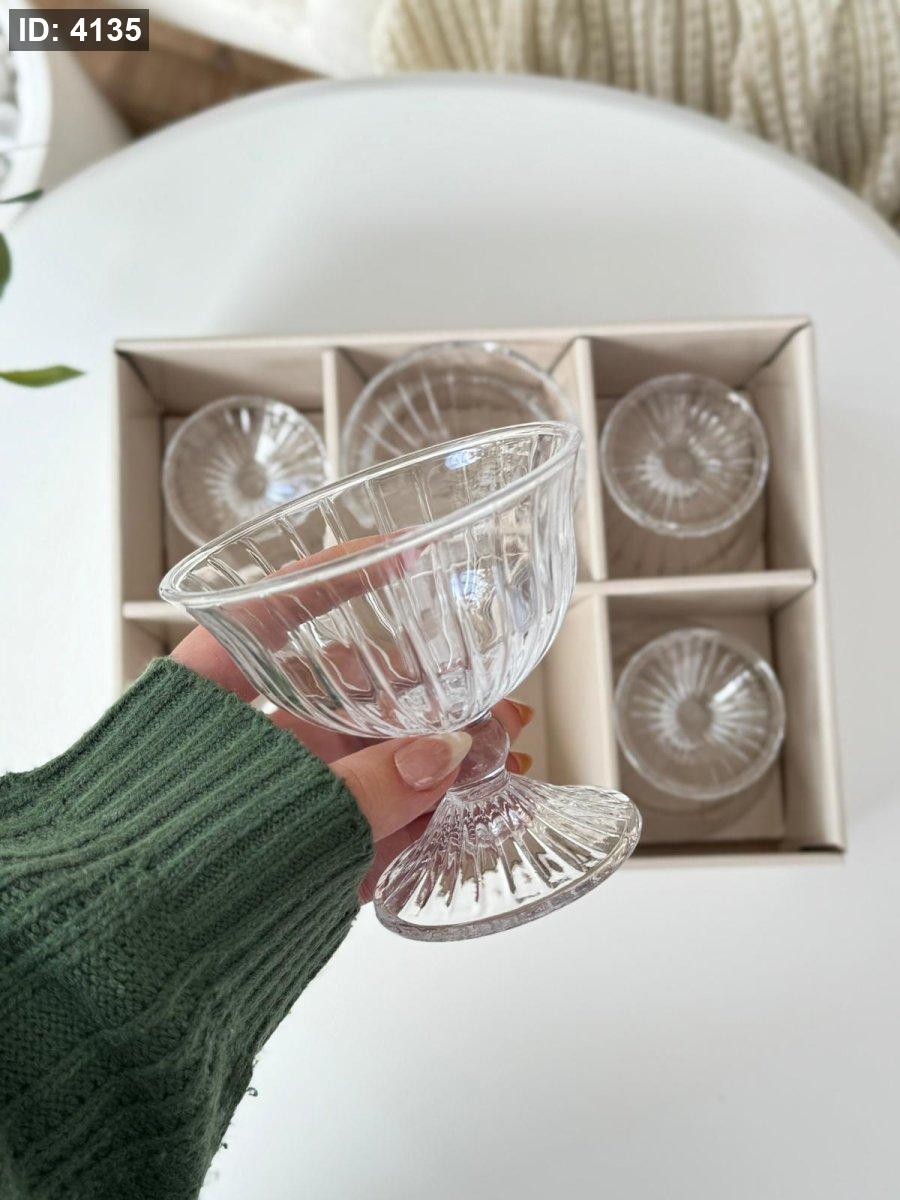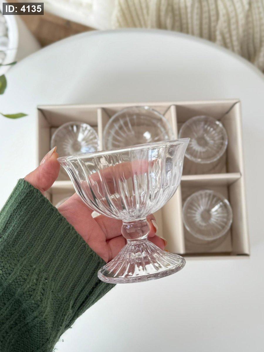 كاسات بوظه برجل شفاف محزز / 6