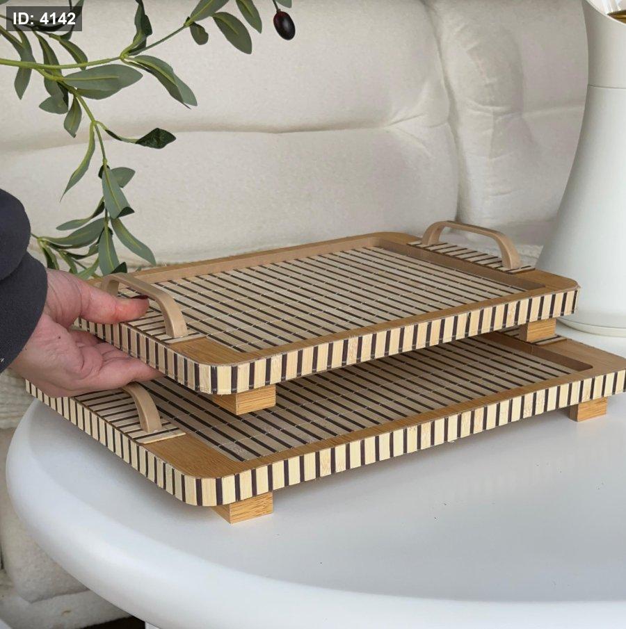 طقم صواني خشب مستطيل قطعتين (37*27+32*23سم)