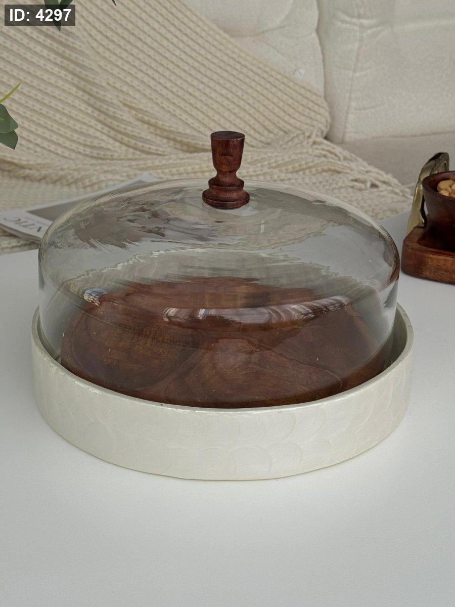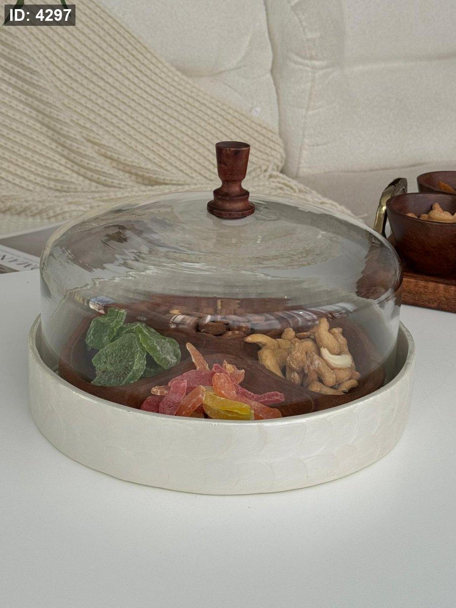 مضيفه مدور مقسم غطا زجاج هندي (27*19سم)