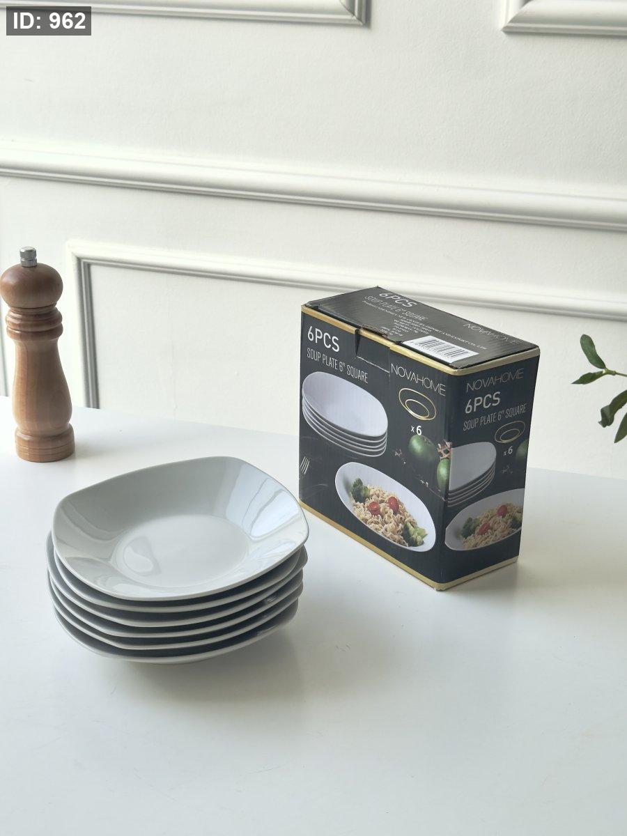 صحن 6 انش ابيض مربع عميق / 6